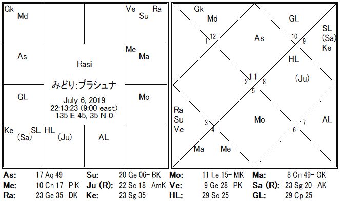一応、先日、プラシュナという技法でも占ってみました。(一応、チャートも載せておきます)