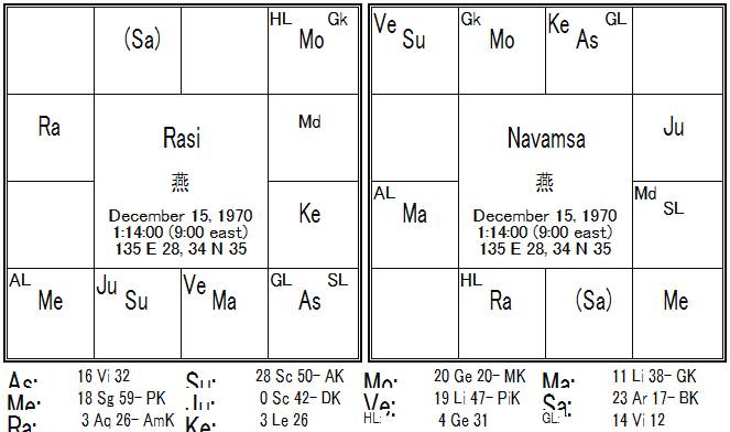こんなにも占って頂いて恐縮なんですが少し質問してもよろしいでしょうかぁ?!ラーシってのが西洋でのネータルに当たる訳ですよね?!ナヴァムジャって何ですか?!後、フルアスペクトってダーナヨガや3室でのスーリアグルヨガだけれども12室ルーラーの太陽は難しい・・・何が難しいのでしょうかぁ?