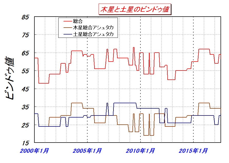 しかたないので、アシュタカヴァルガのビンドゥ値で、運気の推移を出しておきます(金運とは限りませんが・・・)