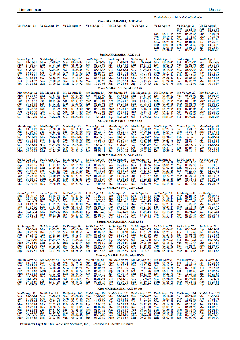 ・インド式で時期を読むには、まず「ヴィムショタリーダシャー」という手法が王道です。それで幾つかのポイントを見てみます。